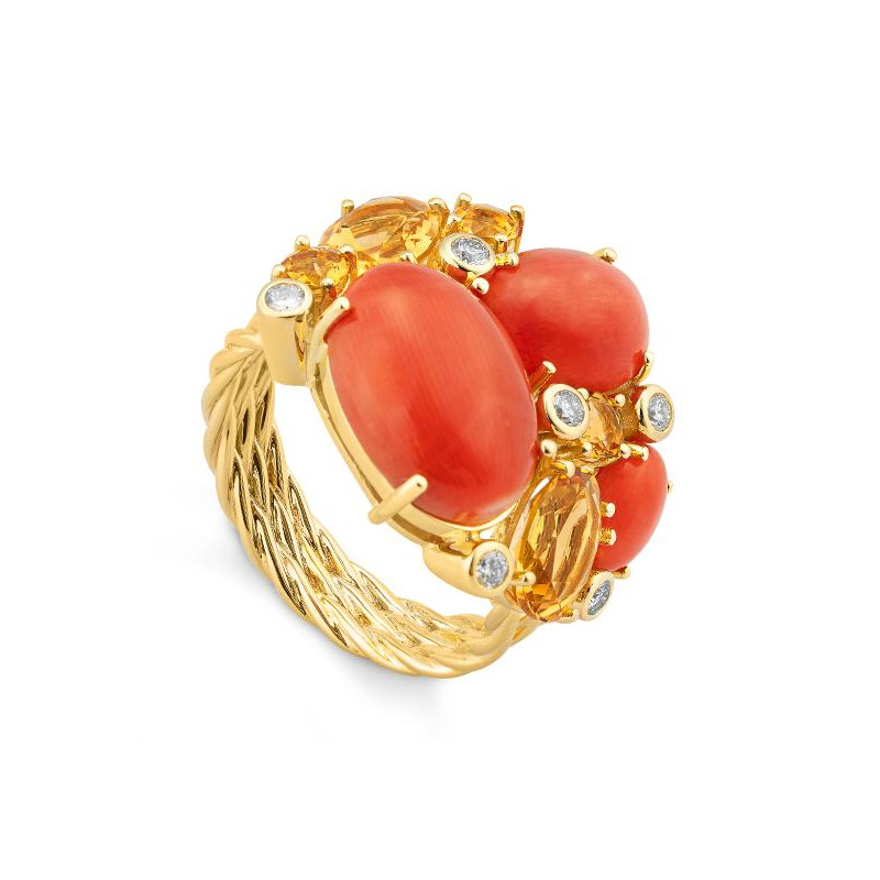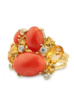 Ring - G.coral/dia. 0,21 Ct. H/si